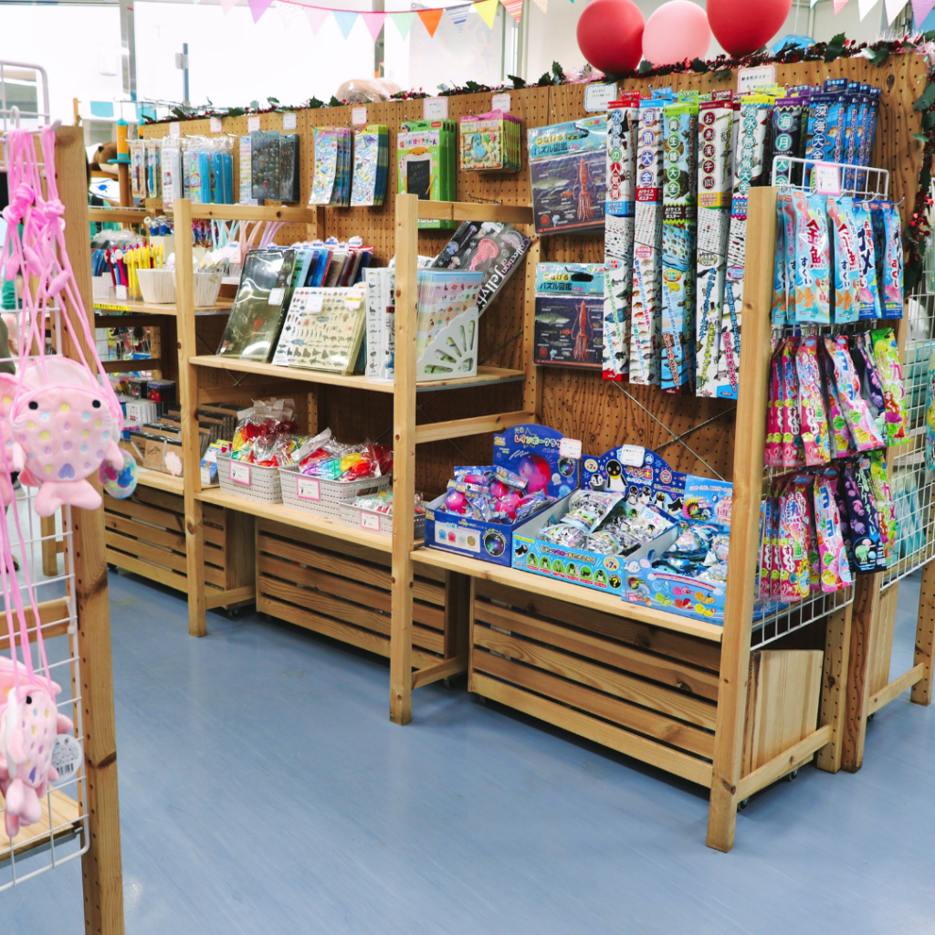 お土産コーナーでは、いろいろなぬいぐるみや小物が販売していました